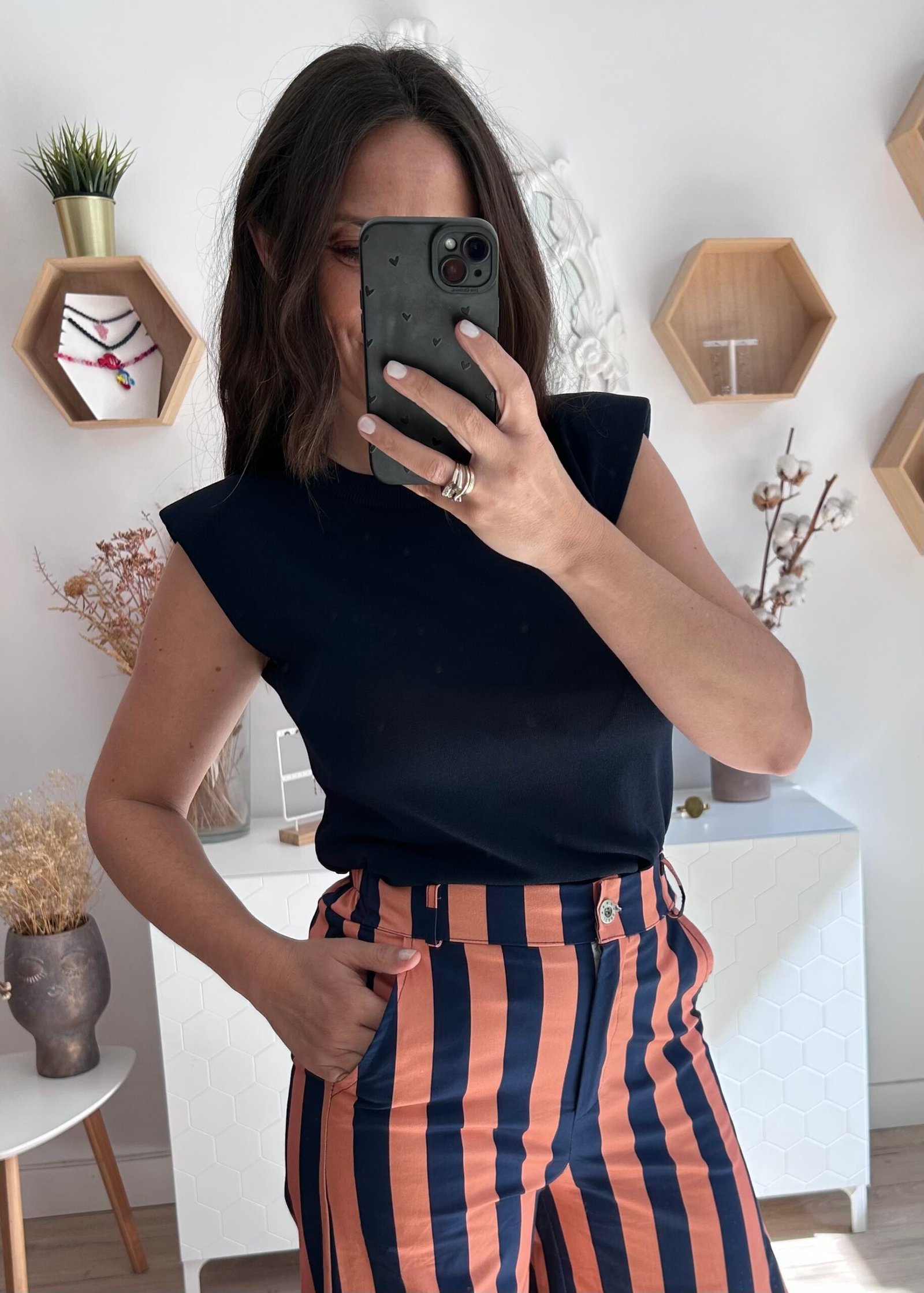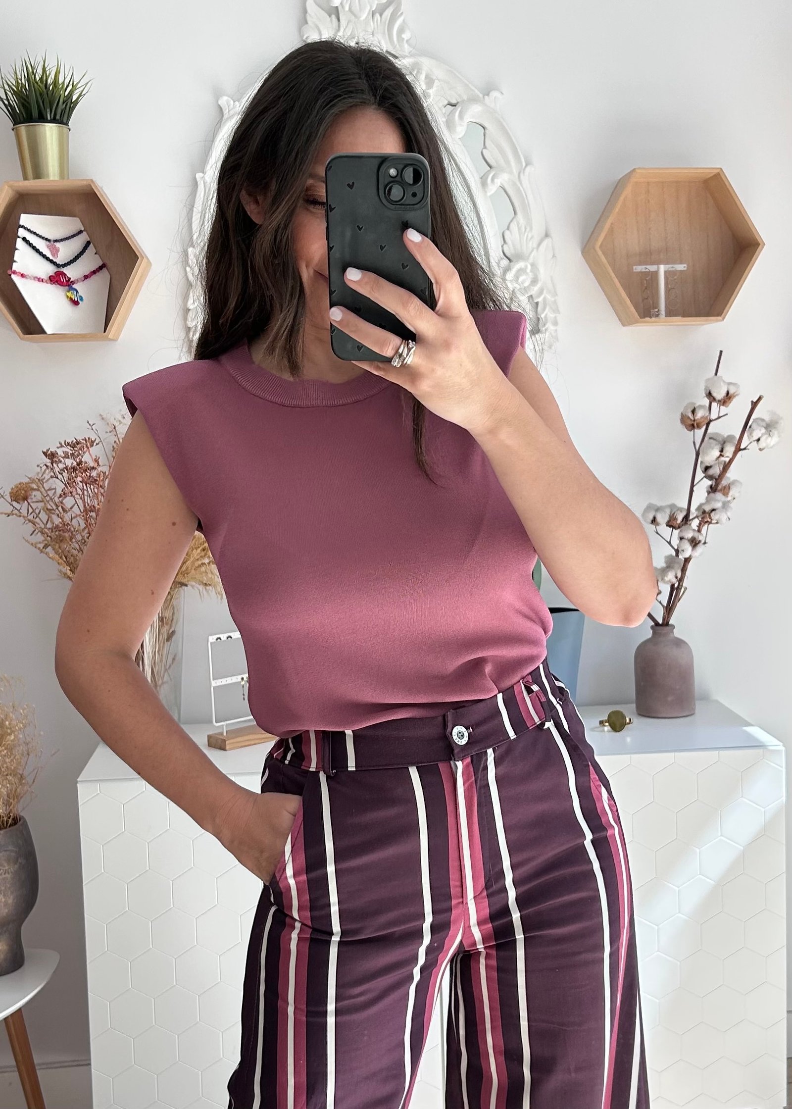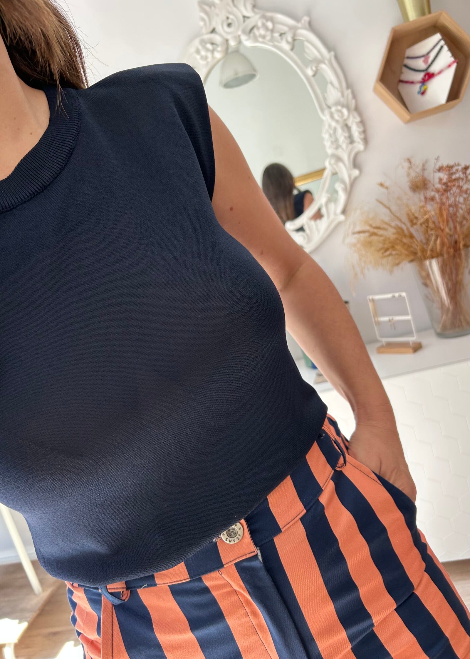 Camiseta en punto fino con detalle de hombreras