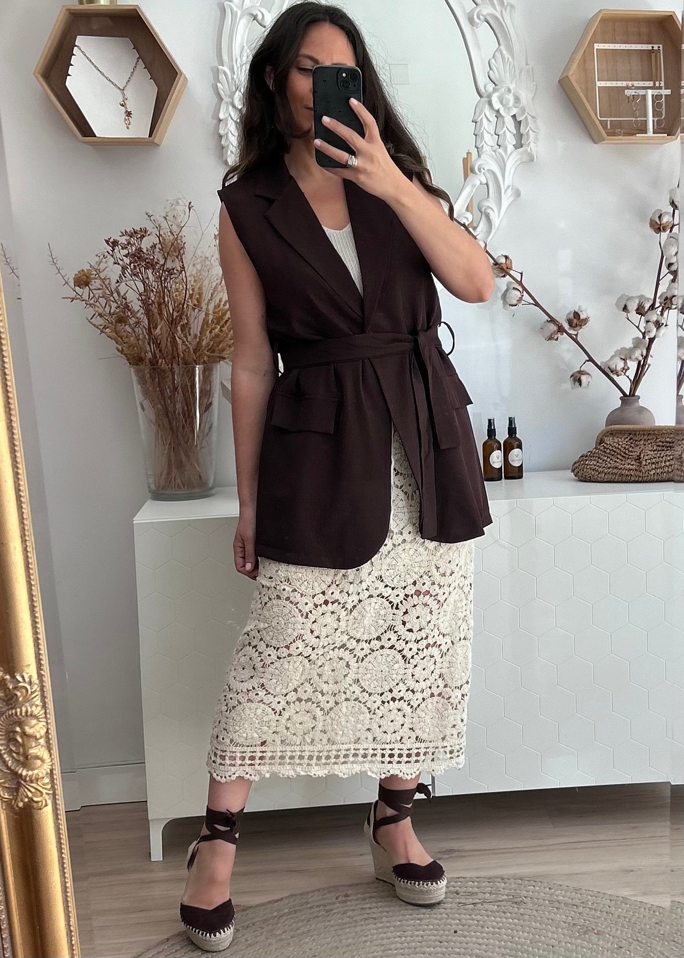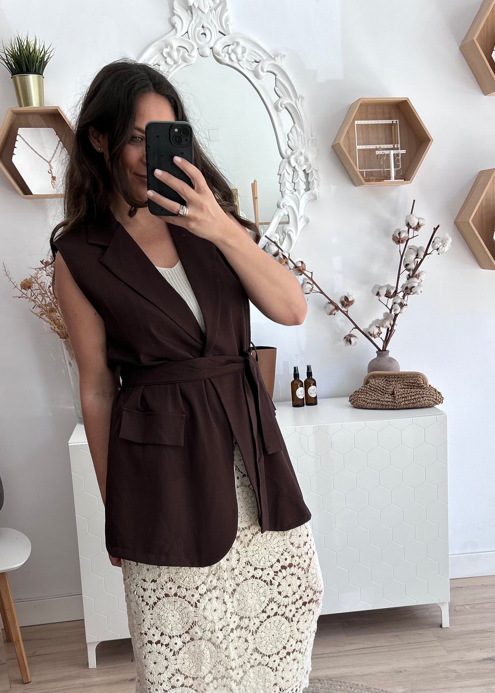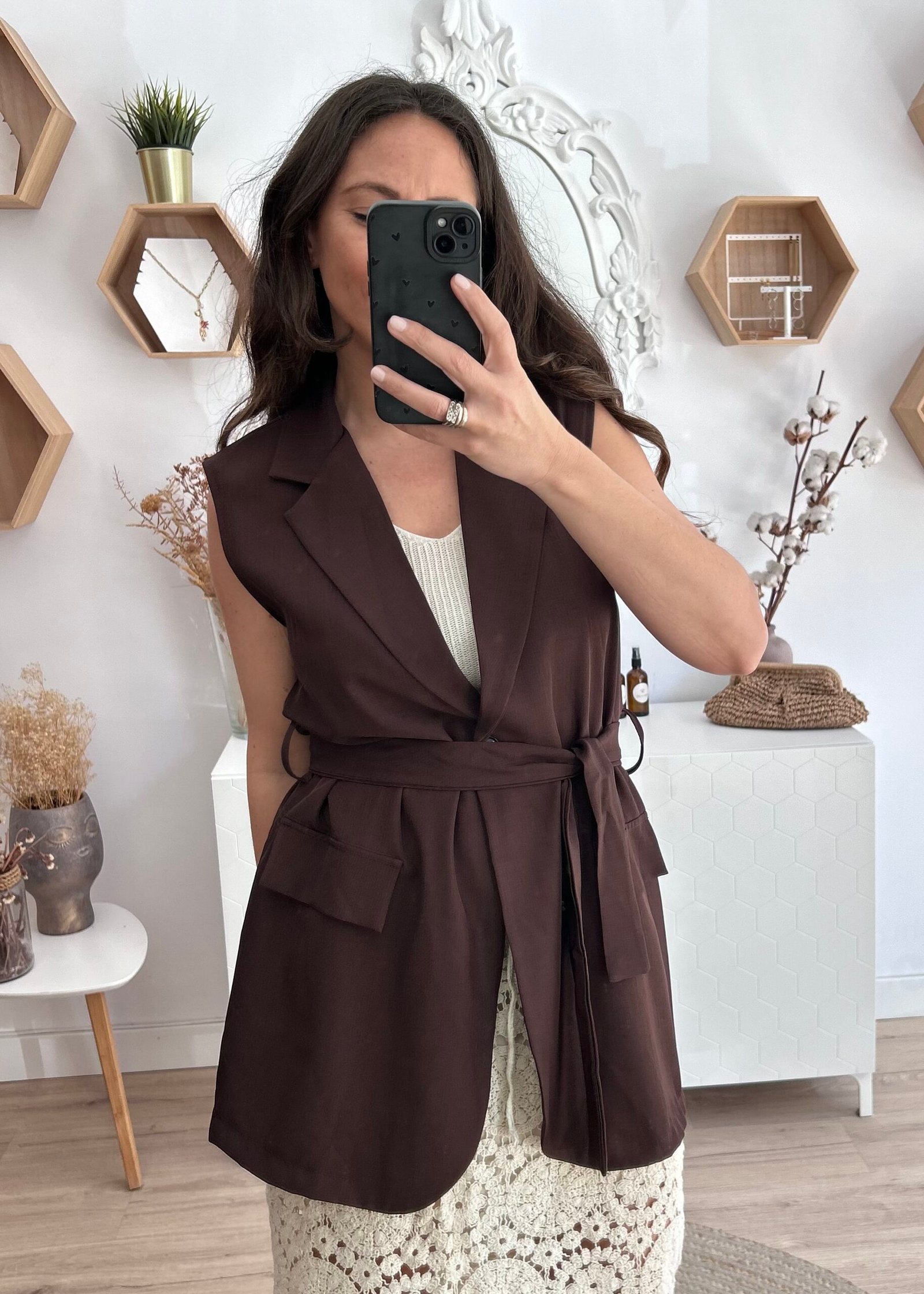 Chaleco largo en color chocolate