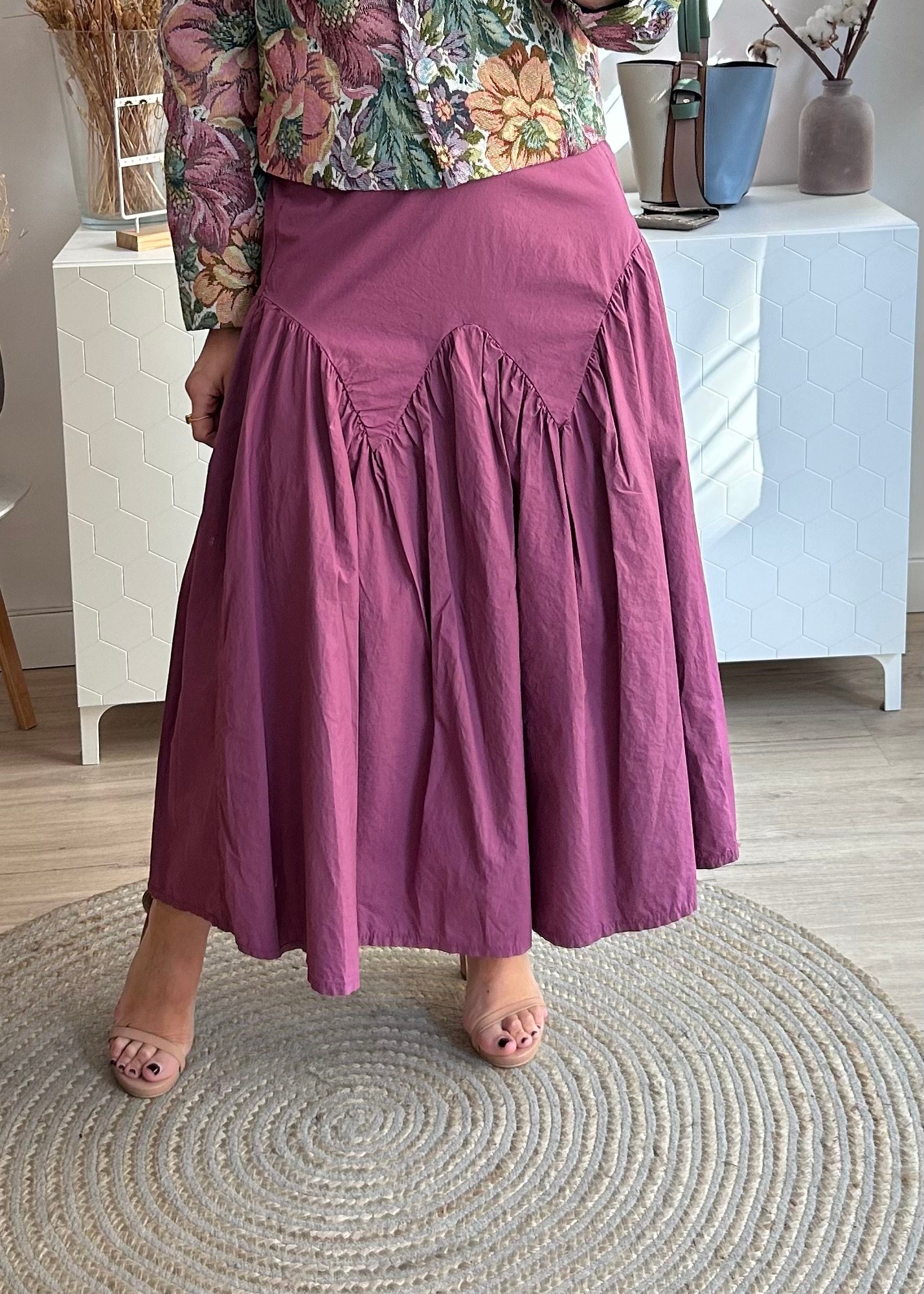 Falda en color rosa oscuro con detalle delantero