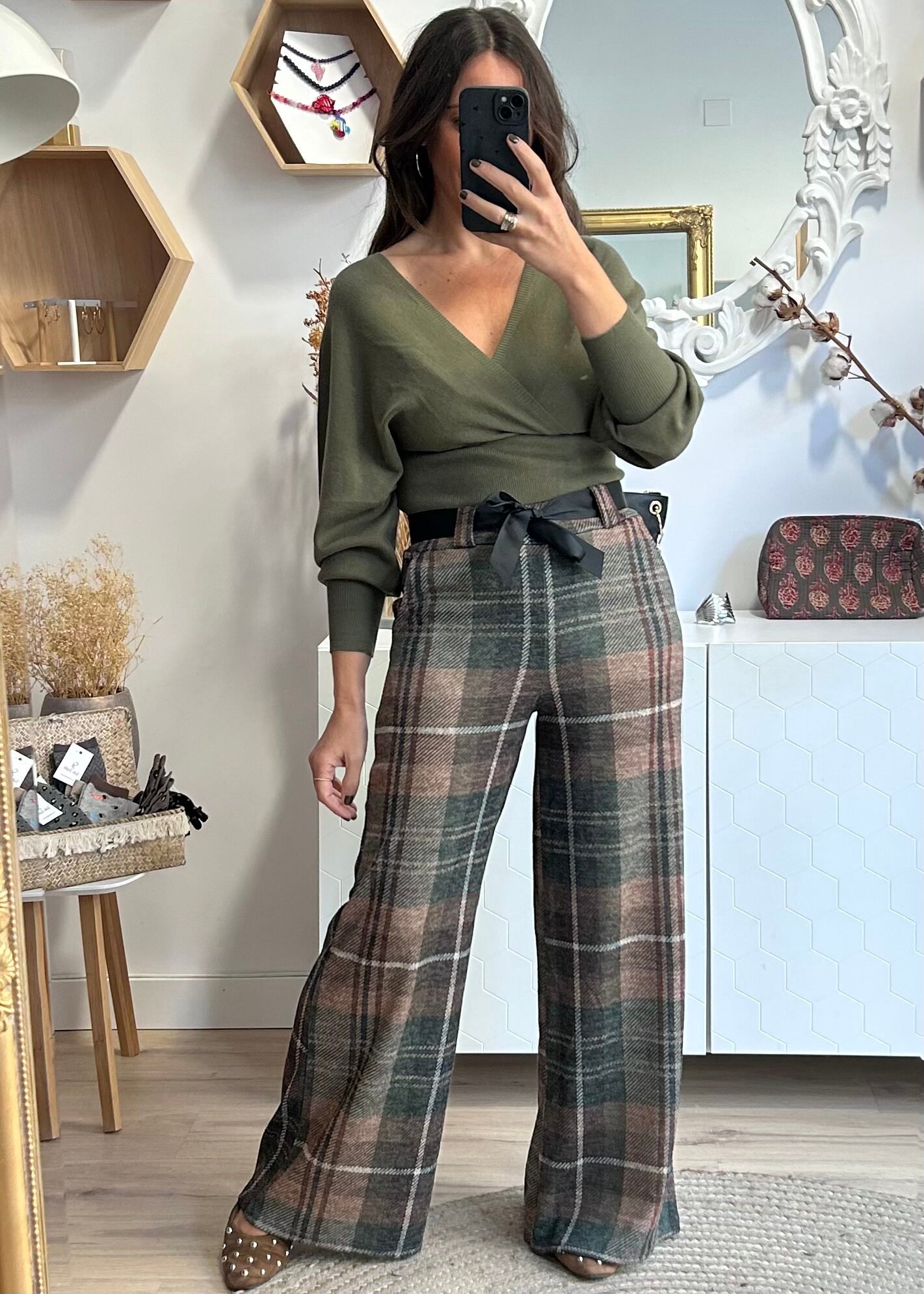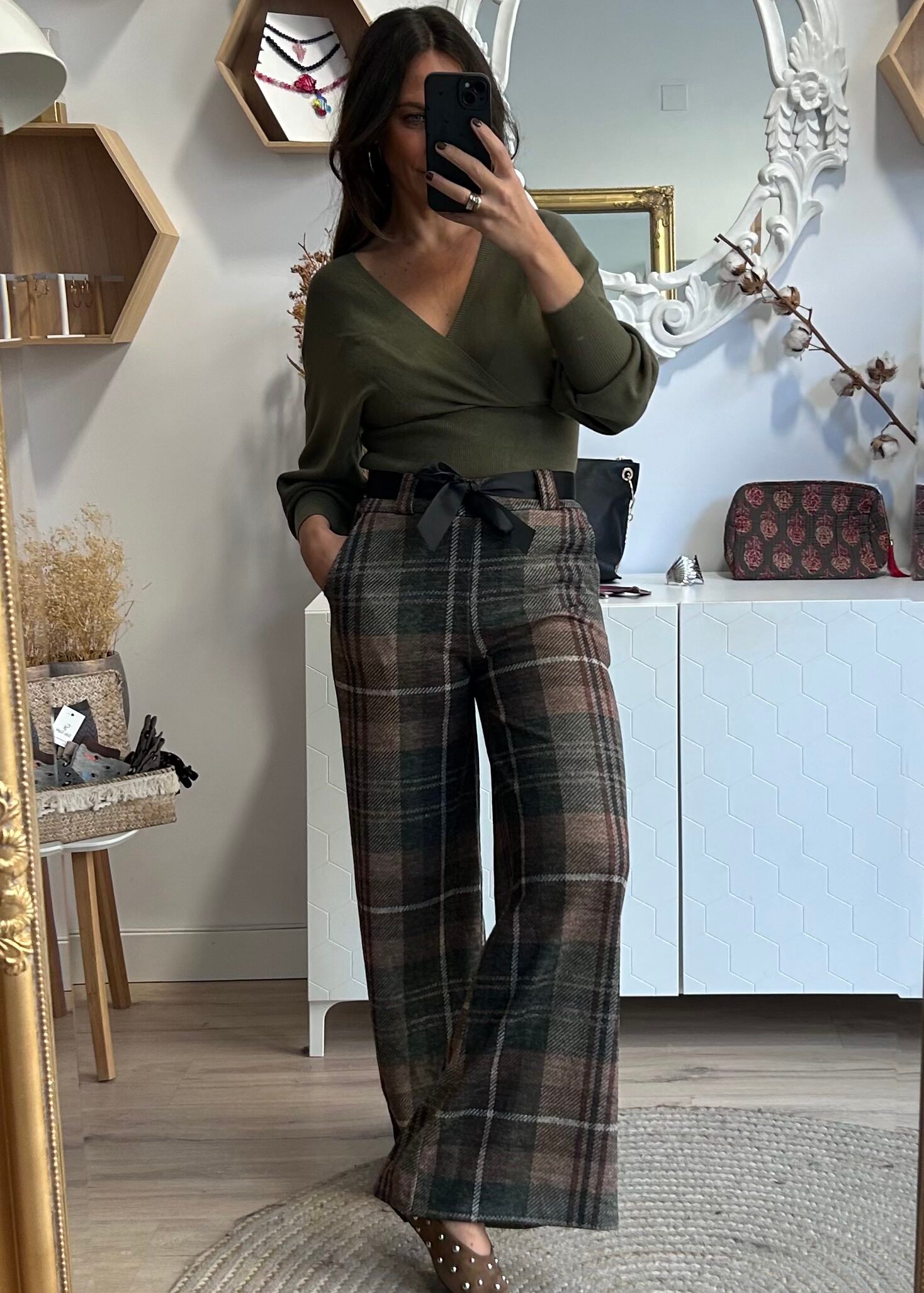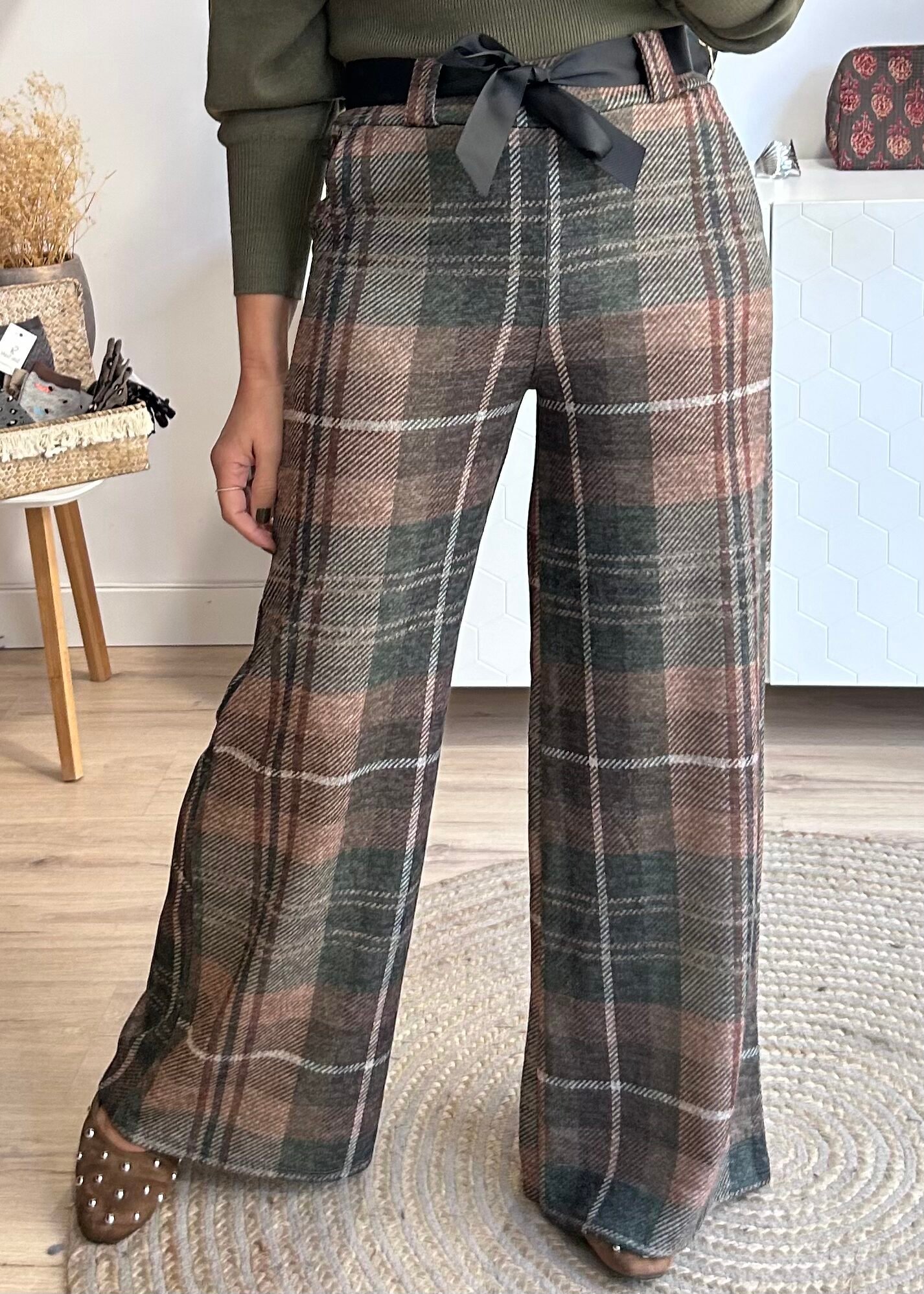 Pantalón Leticia verde y camel