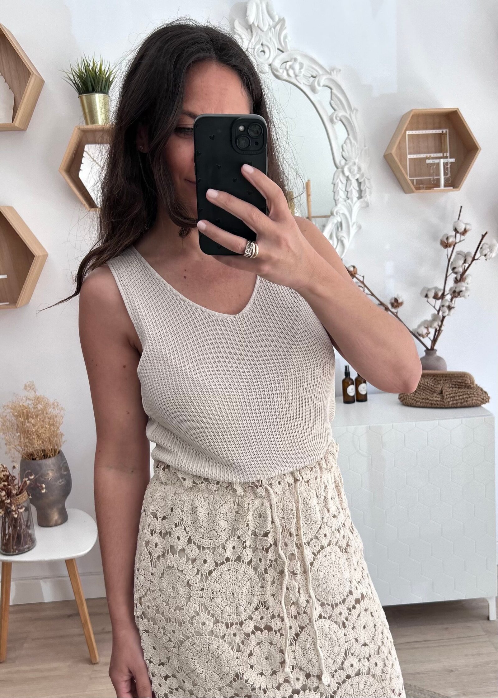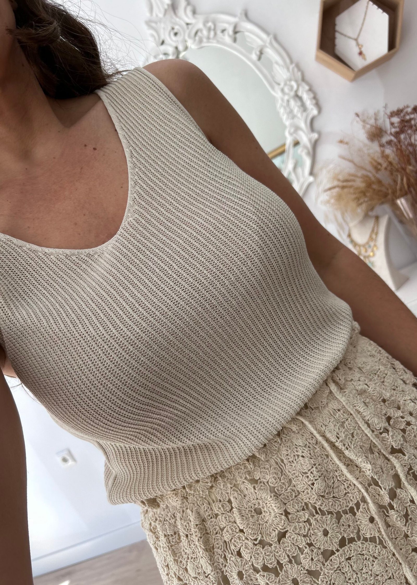 Top en color beige en punto fino